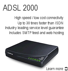 Unlike dial-up services, Mistral ADSL provides a full-time connection that is "always on" 24 hours a day - no more dialing, busy signals, or call charges. Full-time connectivity, together with a block of dedicated IP addresses, means that you can host an e-mail, web or FTP server.